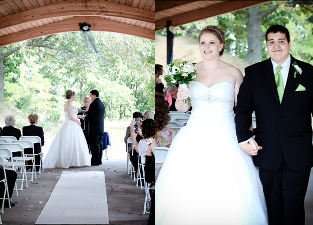 Today's wedding is courtesy of the talented and super sweet photographer, Misty Minna. Misty was kind enough to share the beautiful wedding of Donna and Adam with us, who married in Grand Rapids, Michigan in September of 2011. If you are interested in doing a sand ceremony, this couple had a lovely one, which you'll find pictures of below. I also love the fact that they made so many eco-conscious choices: they married in a local park, used flowers from an organic market, and held their reception at a restaurant that supports local farmers. (Misty gave me a whole synopsis of this entire wedding, which I've included at the end of this post for your perusal.) Thank You Misty!