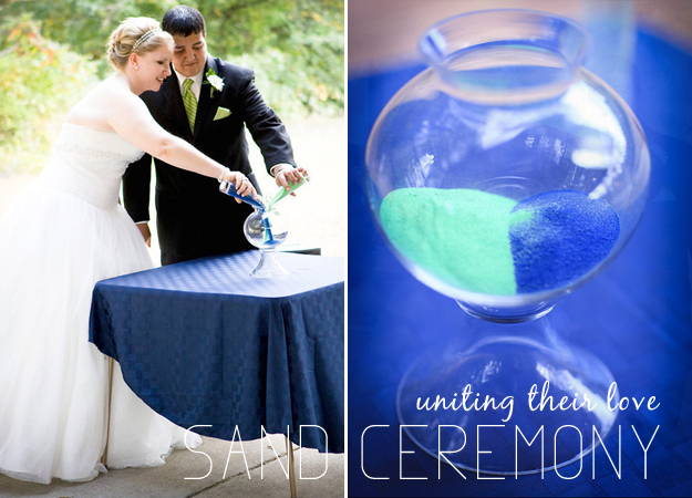 This wedding is beautiful! I love their use of environmentally friendly details! Also the sand ceremony is absolutely amazing and such a wonderful way to express love!