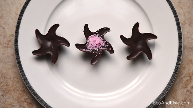 Pour the chocolatey mixture into an ice cube tray. I used this "ninja stars" tray, as my husband calls them, from Ikea. Put them in the freezer for 15 minutes.